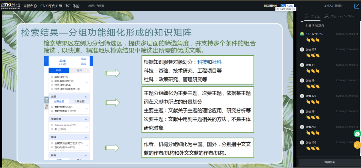 6月10日下午7时,由图书馆主办,中国知网承办的“知识无界,知网相伴”主题活动成功在线举办。本次活动由“CNKI平台升级新体验”直播讲座和有奖竞答活动两部分组成。
