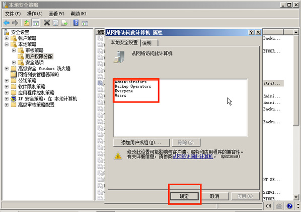 在本地安全设置中关闭系统权限只分配给Administrators组。