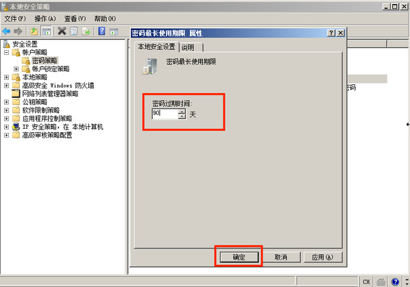 对于采用静态口令认证技术的设备,帐户口令的留存期不应长于 90 天。 操作步骤打开 控制面板 > 管理工具 > 本地安全策略,在 帐户策略 > 密码策略 中,配置 密码最长使用期限 不大于 90 天。